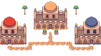 Presenting another expansion set for the Fantasy RPG pixel asset pack ~ This expansion pack contains everything you need for a desert map: tiles, roads, palmtrees, cacti, tents, coasts, decoration, NP...