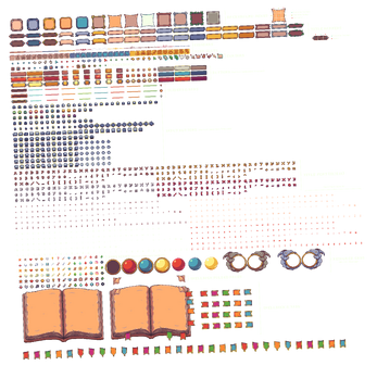 // v1.6: Added 4 new background boxes, 3 title banners, 7 line dividers, 12 cursors and 3 buttons.