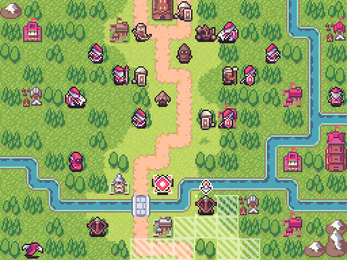 - Overworld tiles (grass, roads, rivers, coasts, water, walls)